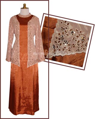 Bahan satin dan bahan kebaya tersebut dijahit menjadi satu kesatuan atau model 1 pieces, bukan model 2 pieces (kalau model 2 pieces biasanya gamis dalam dan luarnya dijahit terpisah).